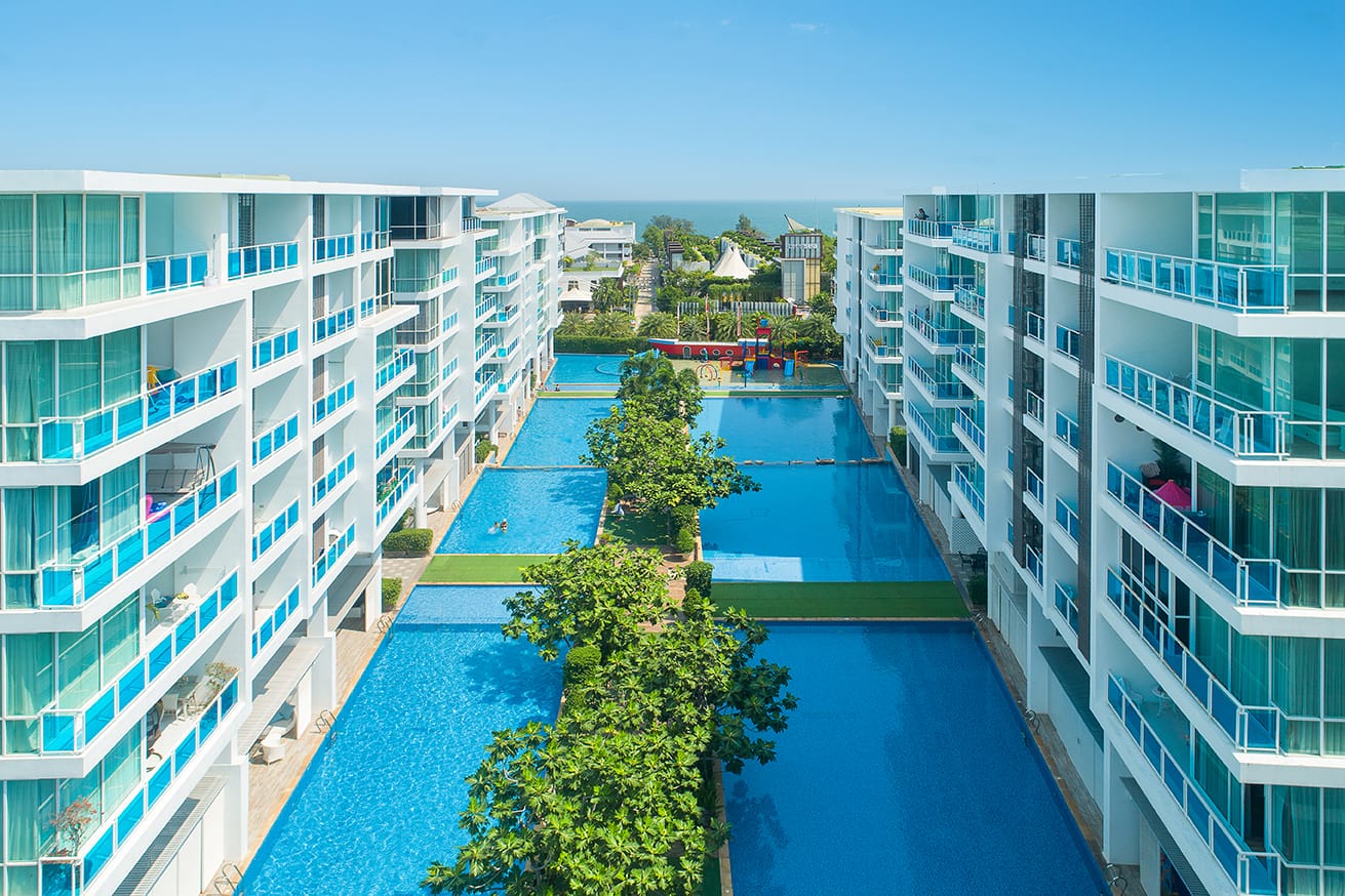 มาย รีสอร์ท หัวหิน คอนโดมิเนียมตากอากาศ Low Rise 7 ชั้น 6 อาคาร ตั้งอยู่บนถนนเขาตะเกียบ-หัวหิน ใกล้หาดหัวหินและตลาดซิเคด้า เป็นคอนโดมิเนียมตากอากาศที่ออกแบบมาเพื่อครอบครัวโดยเฉพาะ โดดเด่นด้วยห้องพักขนาดกว้างขวางเริ่มต้นที่ 2 ห้องนอน ทำให้มีพื้นที่ใช้สอยและเป็นสัดส่วนสูง โปร่งสบายด้วยเพดานสูง 2.7 เมตร จุดเด่นของโครงการคือพื้นที่ส่วนกลางขนาดใหญ่ ไม่ว่าจะเป็น สวนน้ำสำหรับเด็ก สระว่ายน้ำระบบเกลือถึง 8 สระ และห้องเด็กเล่น เพื่อให้ทุกคนในครอบครัวได้ใช้เวลาพักผ่อนร่วมกันอย่างมีความสุขและเต็มที่